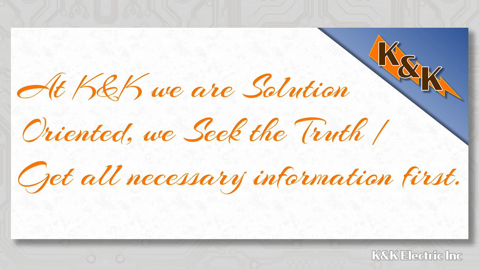 The following is K&K Electric’s list of Core Values and Behaviors that we as employees all strive to embrace and follow.