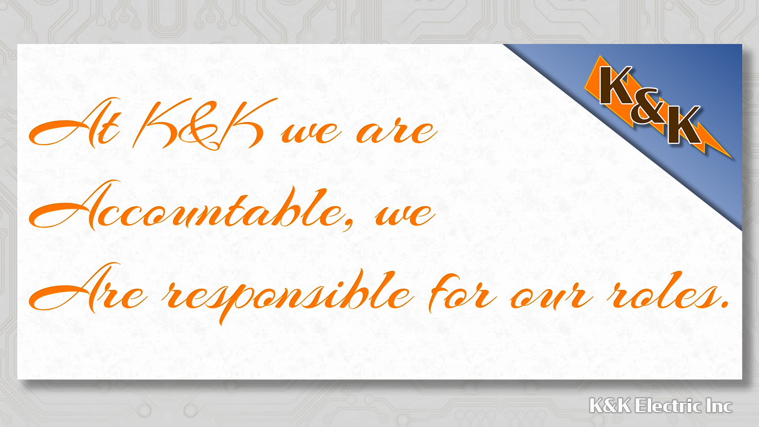 The following is K&K Electric’s list of Core Values and Behaviors that we as employees all strive to embrace and follow.