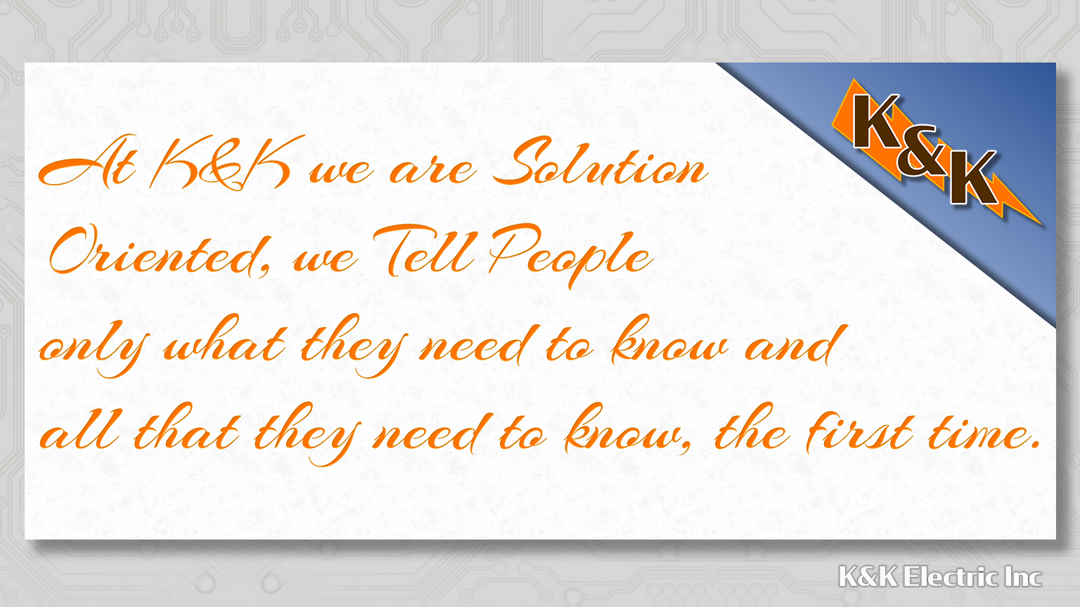 The following is K&K Electric’s list of Core Values and Behaviors that we as employees all strive to embrace and follow.