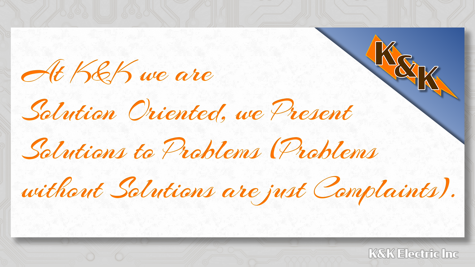 The following is K&K Electric’s list of Core Values and Behaviors that we as employees all strive to embrace and follow.